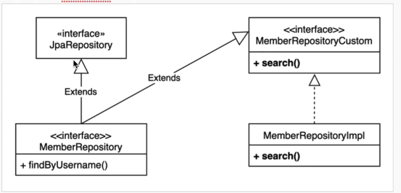 - 커스텀 인터페이스를 만들어 구현하고( 이름을 반드시 Impl 을 뒤에 붙여야함 ), 이를 JPArepository 인터페이스를 상속받은 곳에 상속시킨다.